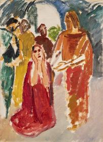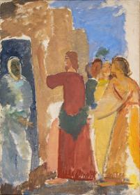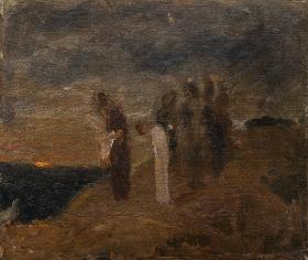 Karl Isakson studerade på Konstakademien 1897–1901 men trivdes inte med den konservativa undervisningen. Han var mycket självkritisk och hade stora svårigheter att färdigställa något större verk, vilket gjorde det omöjligt för honom att tilldelas stipendier. Trots detta kunde Isakson 1902 ge sig iväg till Florens via Berlin och München. Efter tre månader i Florens fortsatte han till Rom. Isakson tog strakt intryck av det han såg, inte minst Giotto, men befann sig i en problematisk situation psykiskt och konstnärligt. Han lyckades knappt skapa något. Då skrev han ett brev till den danske konstnären och läraren Kristian Zahrtman, som under sommarhalvåret vistades i Cività d'Antino. Zahrtman fattade tycke för den unge svensken och tog Isakson som elev. Isakson flyttade nu till Köpenhamn där han gick i Zahrtmans målarskola vid Kunstnernes Frie Studieskoler.