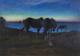 År 1887 återvände Kreuger till Sverige och bosatte sig i Varberg. Tillsammans med Richard Bergh och Karl Nordström bildade han en koloni av målare, den så kallade Varbergskolan, aktiv 1893–1895. Kreuger övergav nu det franskinfluerade måleriet för ett mörkare nationalromantisk tonläge. Bönder och betande boskap är ett återkommande motiv. Varbergsskolan påverkades av syntetismen som förenklade formerna till stora färgfält. Kreuger tog också intryck av Vincent van Goghs teckningar och utvecklade en egenartad teknik där han med prickar och streck i tusch skapade mönster och underströk former i målningarna.