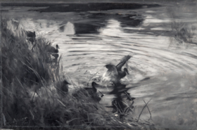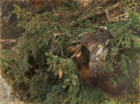Liljefors specialiserade sig på djurmotiv men till skillnad från samtida exempel i genren målade han djurens liv utan idealisering. Han tog intryck av Charles Darwins teori om det naturliga urvalet och skildrade gärna kampen för liv. Han kombinerade en djup kunskap om djuren och deras beteende med friska naturstudier, påverkade av friluftsmåleriet och impressionismen. På Bullerön kunde Liljefors studera skärgårdens fåglar och djur i sin naturliga miljö. Under 1890-talet fick hans måleri en djupare klangbotten. Liksom för många av de från Paris hemvändande konstnärsförbundarna fångade det nordiska skymningslandskapet och den mörka skogen hans intresse.