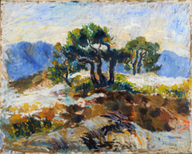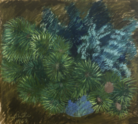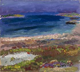 Inge Schiöler (1908–1971) föddes i Strömstad på västkusten. Han utbildades först vid Slöjdföreningens skola och sedan vid Valand 1926–1928. Schiöler hade sin första separatutställning på Svensk-franska konstgalleriet 1932. I både figur- och landskapsbilder utvecklade han tidigt en kraftfull färgstark expressionism. Schiöler drabbades av psykisk ohälsa 1933 och vårdades därefter på S:t Jörgens sjukhus under flera decennier. Under tiden på sjukhuset var han periodvis ointresserad av konst men återupptog måleriet 1942 och framträdde med samma koloristiska originalitet och behärskning som tidigare. Nu med motiven reducerade till bohuslänska skärgårdslandskap och blomsterstilleben. Schiöler kunde 1960 lämna sjukhuset och var aktiv som konstnär fram till sin död.