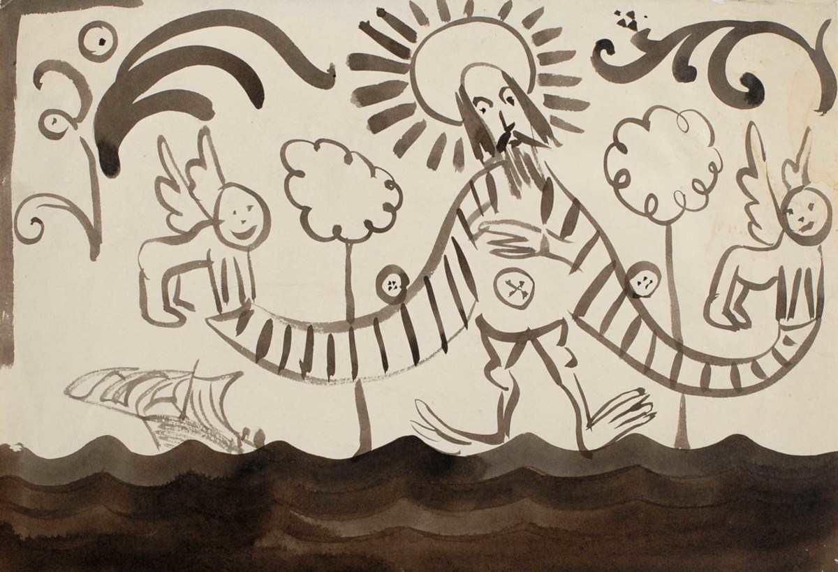 Tuschlavering på papper