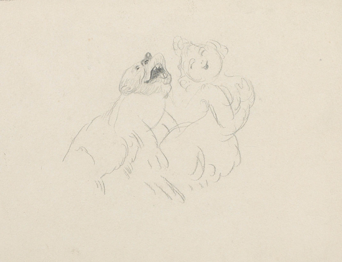 Påskrift (a tergo): utkast till saga i fyra scener. (tecknat)