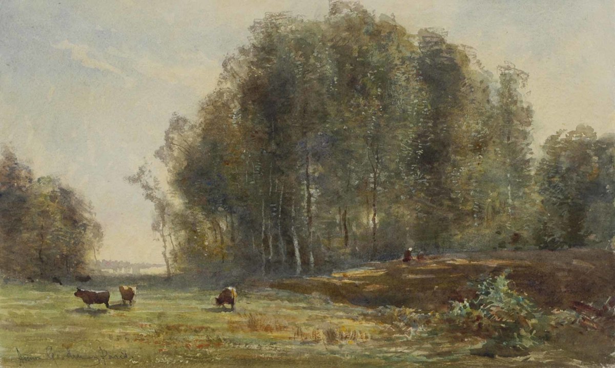 Landskap med kor. Kopia efter Corot.