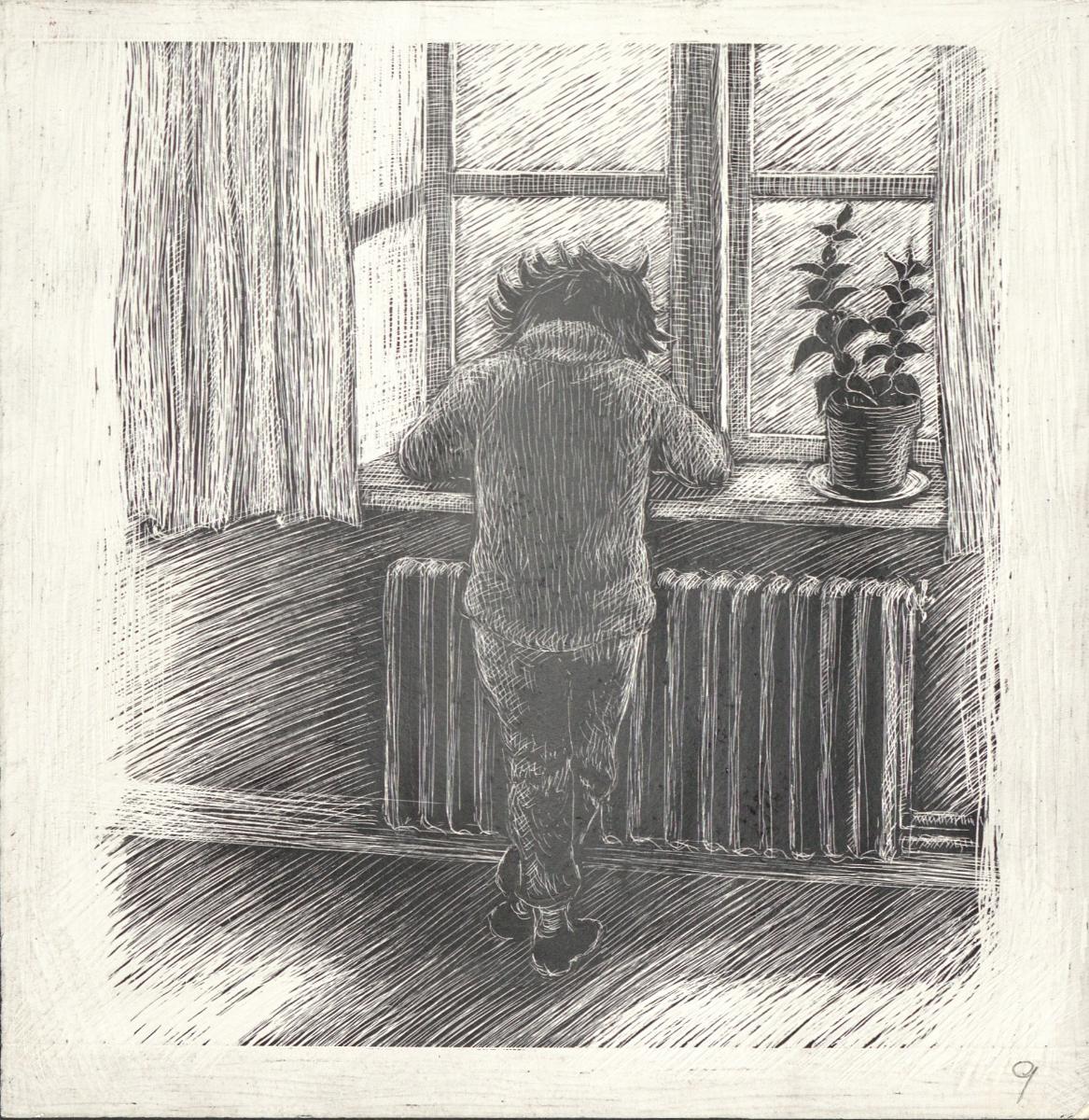 Han står framme vid fönstret i sovrummet..., ur Att vara Elvis