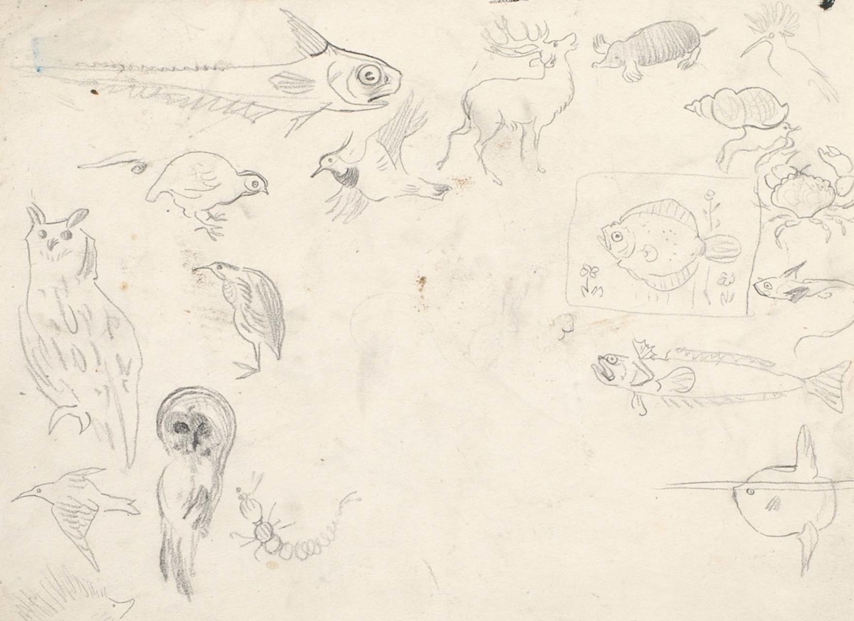 Påskrift (a tergo): drake, blad, kvistar etc. (tecknat)