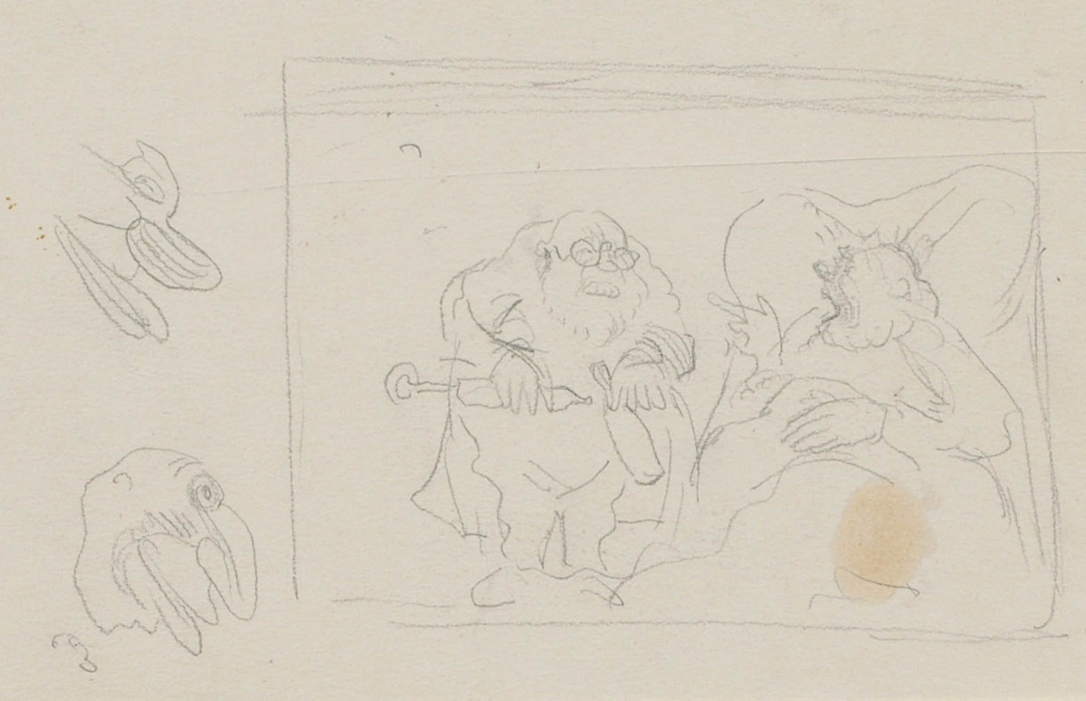 Sjukbesök. man med lavemangspruta och sänglig. man (skiss)