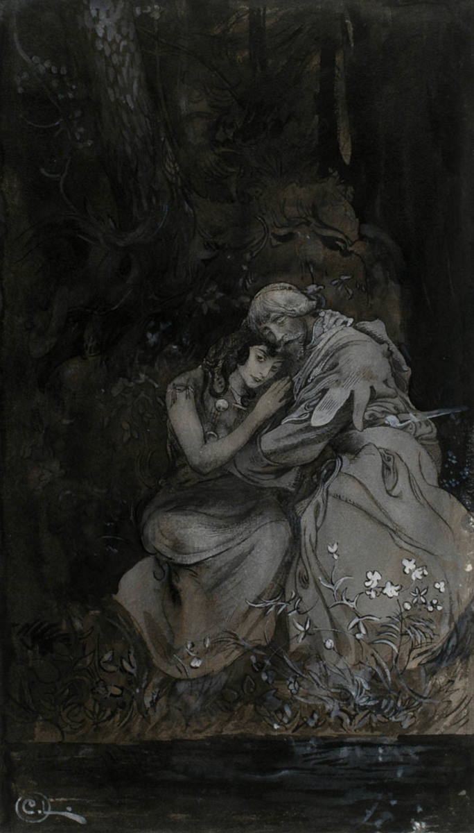 Dag och natt. Erland och Singoalla vid bäcken (Illustration till Viktor Rydbergs "Singoalla")