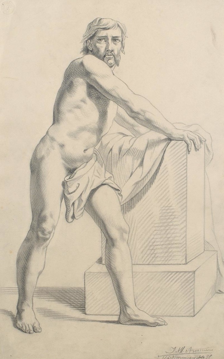 Stående manlig modell vid postament