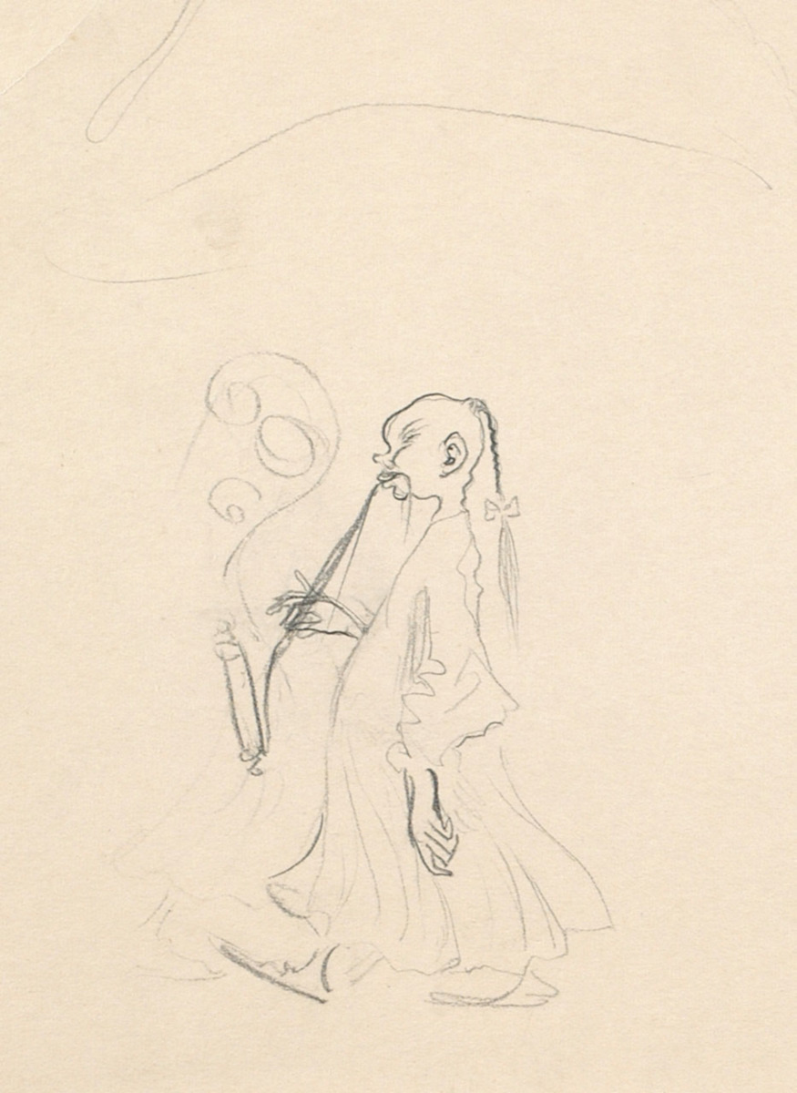 Påskrift (a tergo): Sittande man i rundkullig hatt (tecknad)