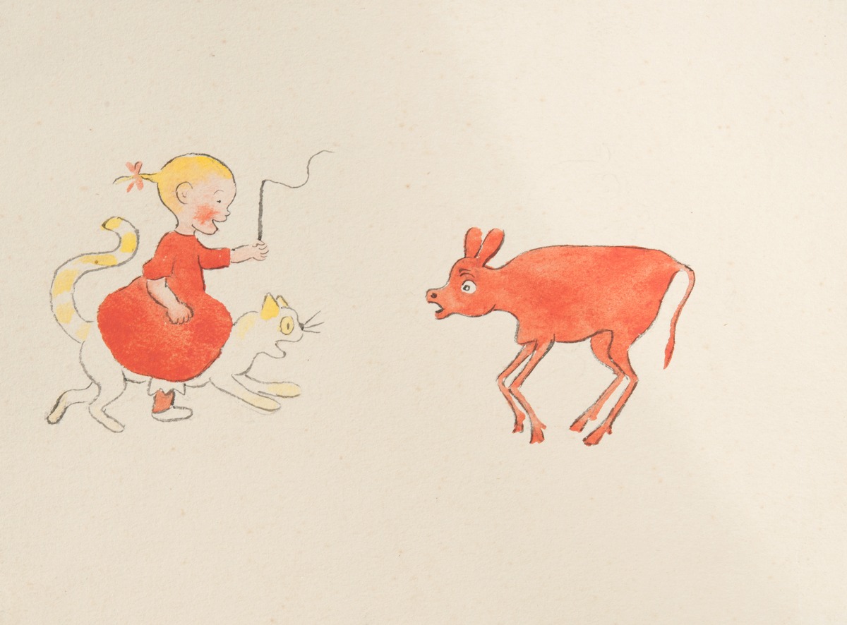 Ivar Arosenius, som också arbetade med bildberättelser för vuxna som en del i sitt konstnärskap, skapade Kattresan (1908) om och för sin dotter Lillan. I bild och text på vers skildrar boken hur Lillan ger sig ut på äventyr, sittande på kattens rygg. Klänningen har modets och kärlekens röda färg. Bilderna är utförda i tusch och akvarell med enkla konturlinjer och följer ett bestämt mönster: till vänster en bild av Lillan på kattryggen, till höger någon de möter och skrämmer på flykten: en nervös ko, en otäck gubbe eller en häst i blommig väst. Boken har älskats av många generationer barn, men kan för dagens unga läsare kännas både högtravande och skrämmande. Kattresan växte fram för privat bruk. När tanken på publicering föddes började Arosenius omarbeta bilderna. Han stramade till dem och arbetade mer medvetet med färgerna så att de skulle göra sig bättre i tryck och samtidigt blev Lillan prydligare och mer klassiskt söt. Den nya versionen blev aldrig färdig på grund av Arosenius tidiga bortgång, men sex av bilderna finns i museets ägo. Den obearbetade versionen trycktes postumt.