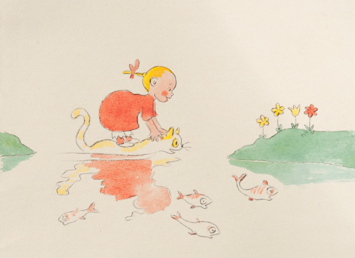 Ivar Arosenius, som också arbetade med bildberättelser för vuxna som en del i sitt konstnärskap, skapade Kattresan (1908) om och för sin dotter Lillan. I bild och text på vers skildrar boken hur Lillan ger sig ut på äventyr, sittande på kattens rygg. Klänningen har modets och kärlekens röda färg. Bilderna är utförda i tusch och akvarell med enkla konturlinjer och följer ett bestämt mönster: till vänster en bild av Lillan på kattryggen, till höger någon de möter och skrämmer på flykten: en nervös ko, en otäck gubbe eller en häst i blommig väst. Boken har älskats av många generationer barn, men kan för dagens unga läsare kännas både högtravande och skrämmande. Kattresan växte fram för privat bruk. När tanken på publicering föddes började Arosenius omarbeta bilderna. Han stramade till dem och arbetade mer medvetet med färgerna så att de skulle göra sig bättre i tryck och samtidigt blev Lillan prydligare och mer klassiskt söt. Den nya versionen blev aldrig färdig på grund av Arosenius tidiga bortgång, men sex av bilderna finns i museets ägo. Den obearbetade versionen trycktes postumt.