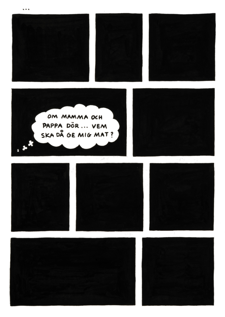 I serien Svarta Bubblor återvänder Lars Arrhenius till serieskapandet efter att under en längre period arbetat med animationer och digitala verk. Uttrycket är dock detsamma, i en förenklad bildvärld möter vi olika individer som lever i parallella världar i samhället. I serien, som gavs ut i bokform 2011, får betraktaren inblick i människors liv under natten. Genom pratbubblorna delges allt från sömnlösa tankar och frågvisa barns prat till gräl mellan makar.