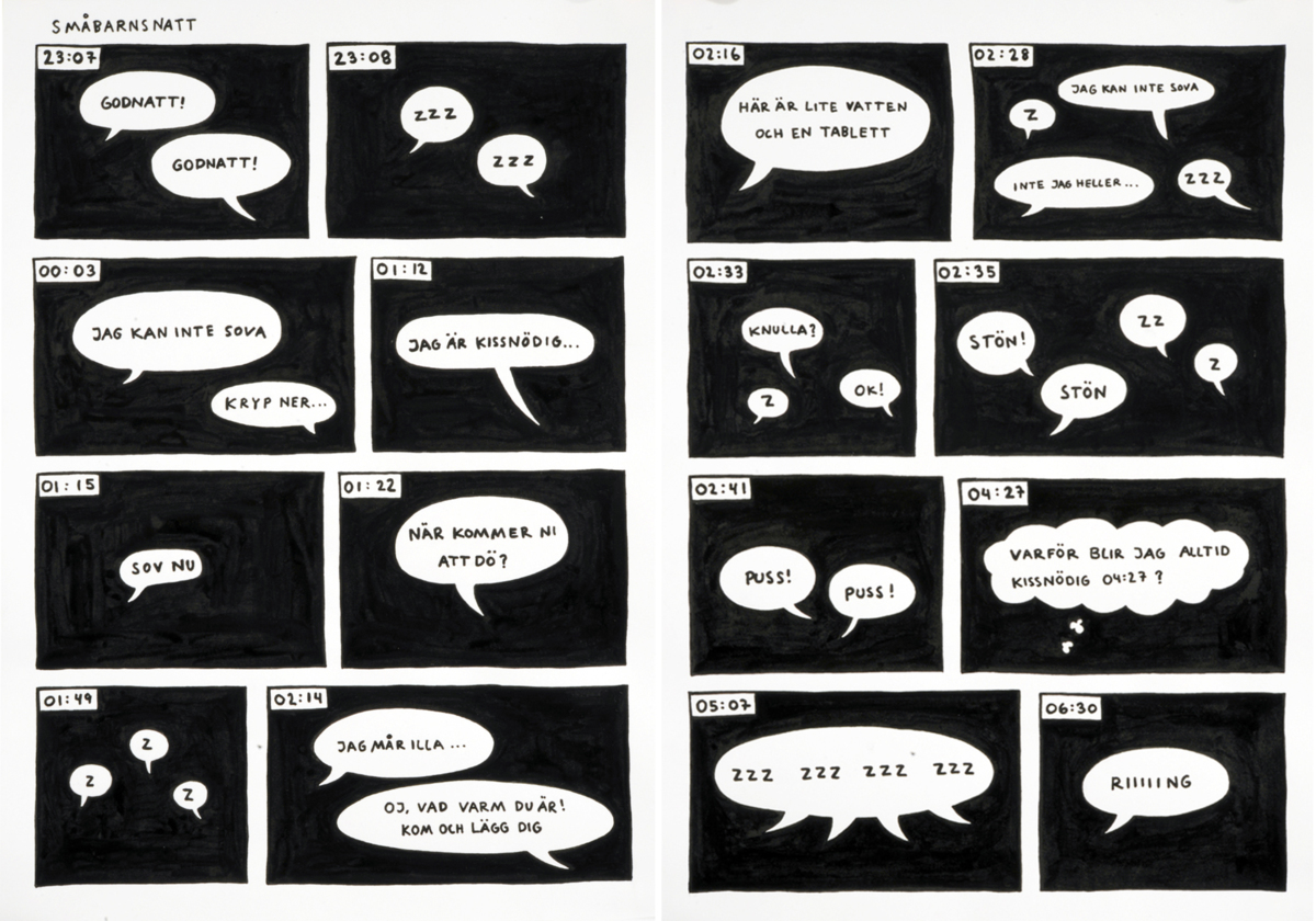 I serien Svarta Bubblor återvänder Lars Arrhenius till serieskapandet efter att under en längre period arbetat med animationer och digitala verk. Uttrycket är dock detsamma, i en förenklad bildvärld möter vi olika individer som lever i parallella världar i samhället. I serien, som gavs ut i bokform 2011, får betraktaren inblick i människors liv under natten. Genom pratbubblorna delges allt från sömnlösa tankar och frågvisa barns prat till gräl mellan makar.