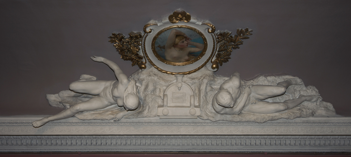 Denna skulpturgrupp ingår i de takdekorationer med allegorier över uppfinningar som magnetismen, ångan, dynamiten, elektriciteten, telefonen och fotografin som fanns i Fürstenbergska galleriet i Brunnsparken men som efter Fürstenbergs bortgång flyttades, först till Göteborgs Museum och senare till konstmuseet vid Götaplatsen. Per Hasselberg utformade skulpturerna med nakna mänskliga figurer och avbilder av uppfinningarna. Till dessa takgrupper målade några av de främsta opponenterna medaljonger: August Hagborg, Hugo Salmson, Ernst Josephson, Carl Larsson, Georg Pauli och Richard Bergh.