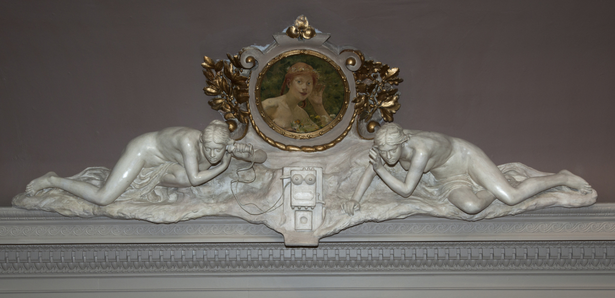 Denna skulpturgrupp ingår i de takdekorationer med allegorier över uppfinningar som magnetismen, ångan, dynamiten, elektriciteten, telefonen och fotografin som fanns i Fürstenbergska galleriet i Brunnsparken men som efter Fürstenbergs bortgång flyttades, först till Göteborgs Museum och senare till konstmuseet vid Götaplatsen. Per Hasselberg utformade skulpturerna med nakna mänskliga figurer och avbilder av uppfinningarna. Till dessa takgrupper målade några av de främsta opponenterna medaljonger: August Hagborg, Hugo Salmson, Ernst Josephson, Carl Larsson, Georg Pauli och Richard Bergh.