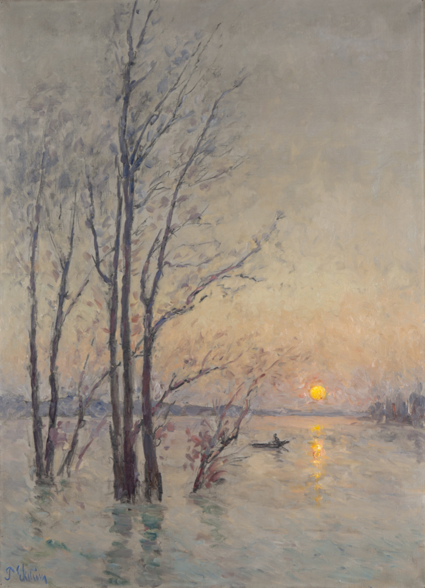 Målningen är tillkommen under 1880-talets sista år då Ekström, efter en tid i Normandie, reste tillbaka till platser i Paris omnejd där han målat på 1870-talet och kring 1880. Om våren svämmade Seine över sina bräddar och förändrade landskapet. Vattenytan återspeglade träden som stack upp ur den. Dessa översvämningsbilder är karaktäristiska för Ekströms franska period och det nya bildspråk han där utvecklade med sitt stämningsfulla, skimrande ljus. Det finns flera variationer på översvämningstemat från samma tid, en på Prins Eugens Waldemarsudde i Stockholm och en på Ateneum i Helsingfors. Av dessa tre är den i Göteborg den mest skissartade och flödigt målade. Den pekar därför framåt mot konstnärens senare, mer upplösta och experimentella arbeten.