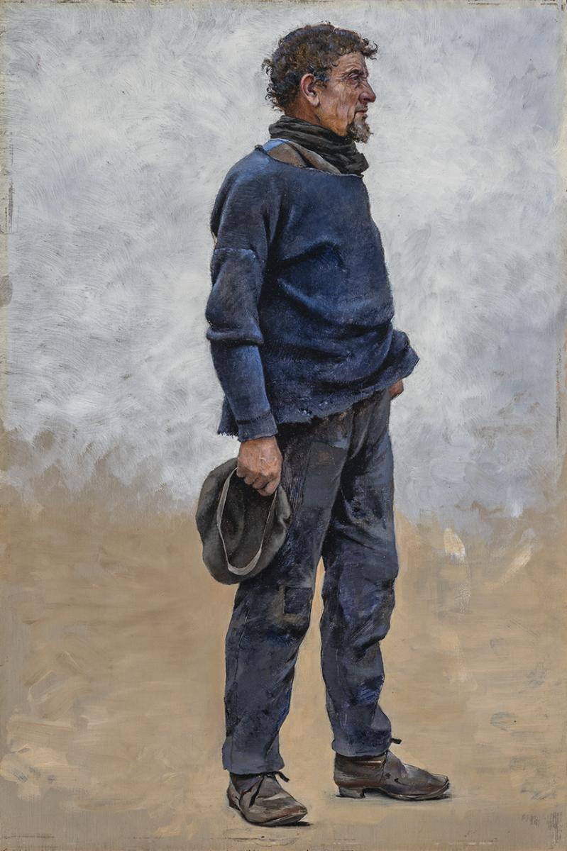 Den andra tablån innehåller Fiskare med korg med en stående mörkhårig fiskare i skägg, grova arbetskläder och sydväst. Med fångstkorgen till vänster vrider han huvudet och blickar ut åt höger. Stranden är målad i samma ockraton vi sett i de andra bilderna, medan bakgrunden i övrigt endast utgörs av ett vitt skimmer. Till serien hör också en målning i stående format, Man med mössa i handen, där en man med fårat ansikte står vänd åt höger. Han bära enkla blå kläder, en grå mössa och grova skor. Liksom i de andra figurbilderna är bakgrunden enfärgat vit respektive sandfärgad. I Hav och moln återges en utsikt över det blå havet. Ljuset bryter fram genom molnen som ligger samlade vid horisonten. Högre upp spricker himlen upp i ett lätt luftperspektiv. Bilden är atmosfärisk, nästan tyngdlös och den mest impressionistiska av de åtta studierna.