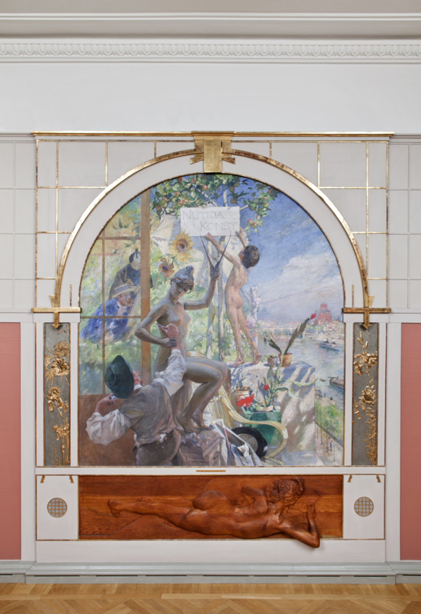 Det skarpa vårljuset flödar i målningen. Konsten startar på nytt ute i det fria. Naturen ställs mot den dynamiska parisermiljön med sitt impressionistiska ljusflimmer över Seine. I grönskan till vänster sitter Carl Larsson i det fria och målar – kanske konstnären syftar på Grez, som ju haft en stor betydelse för hans eget friluftsmåleri. Bakom honom står en japan, vilket antyder en av den samtida konstens inspirationskällor.