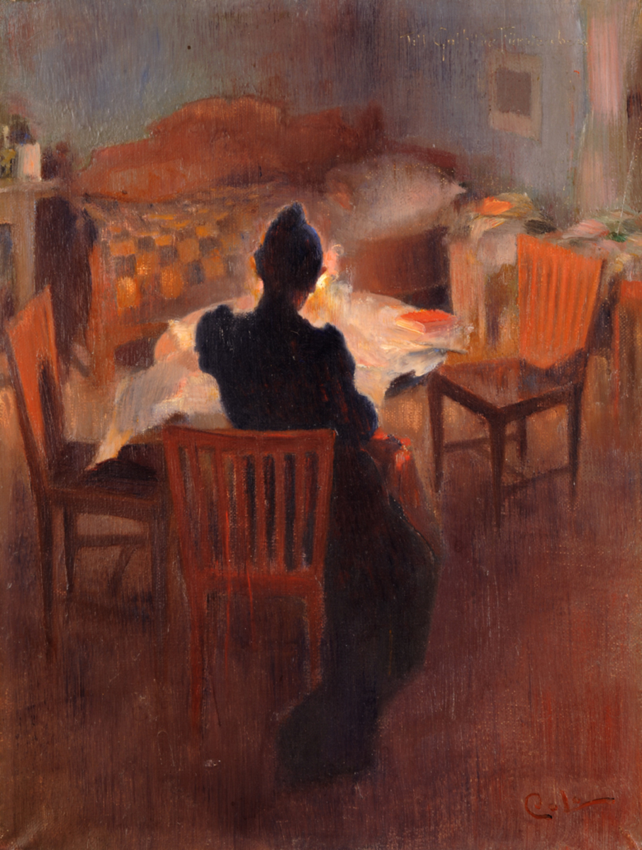 Motivet har en vardaglighet och intimitet, som kan föra tankarna till Holland och den av Carl Larsson beundrade Rembrandt. I ett brev talar han om hur han experimenterade med att måla i artificiell belysning. Målningen är en av de allra första från Dalarna med motiv från det egna hemmet. Dess stämning bärs av ljusdunklets magi. Den lilla målningen utgör en stark kontrast till de senare bilderna från hemmet i Sundborn, som är fyllda av klart dagsljus.