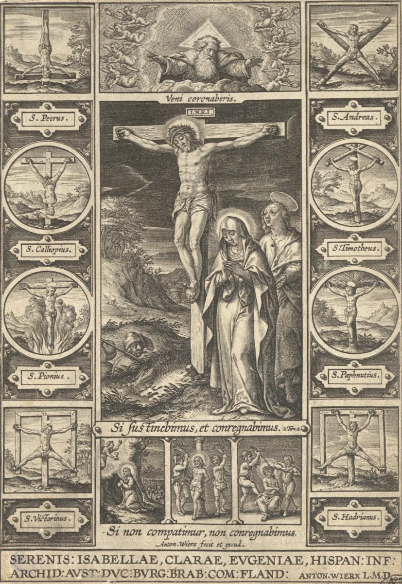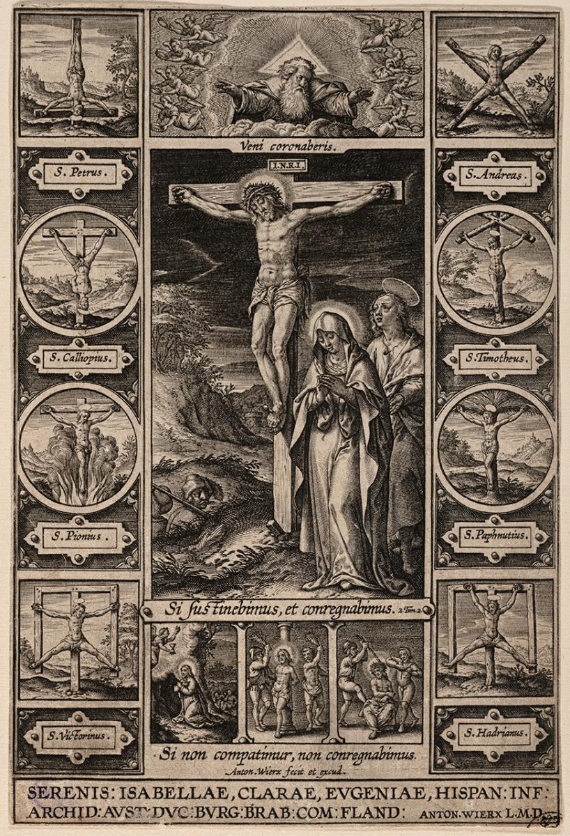 Påskrift (nedtill i plåten): SERENIS: ISABELLAE, CLARAE, EVGENIAE, HISPAN: INF: ARCHID: AVST:DVS :BVRG:BRAB:COM:FLAND: ANTON.WIERX L.M.D.