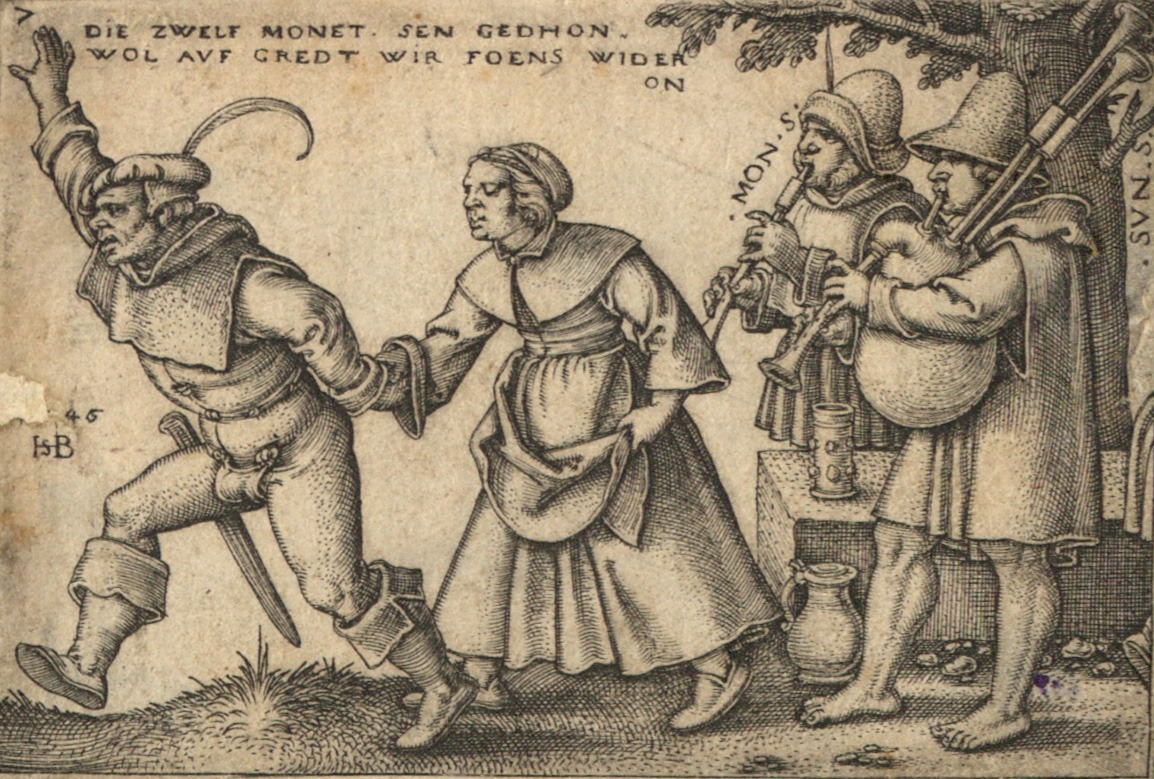 Påskrift (Uppe till höger i plåten): MON S ((till vänster om flöjtspelande mans huvud))