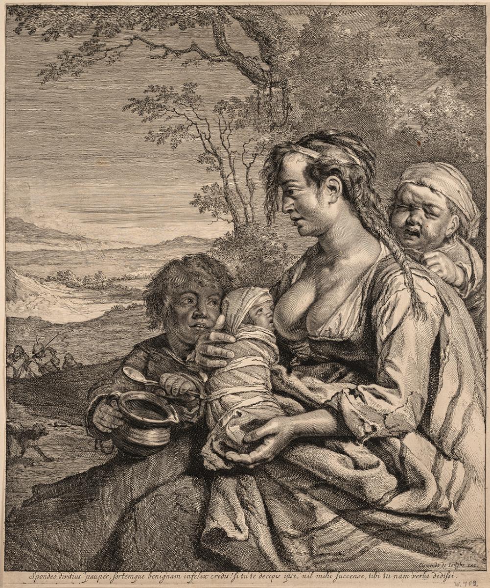 Påskrift (nedtill i plåten): Spondeo divitins pauper, sortemque benignam infelix credis? si tu te decipis ipse, nil mihi succense, tibi tu nam verba dedissi.