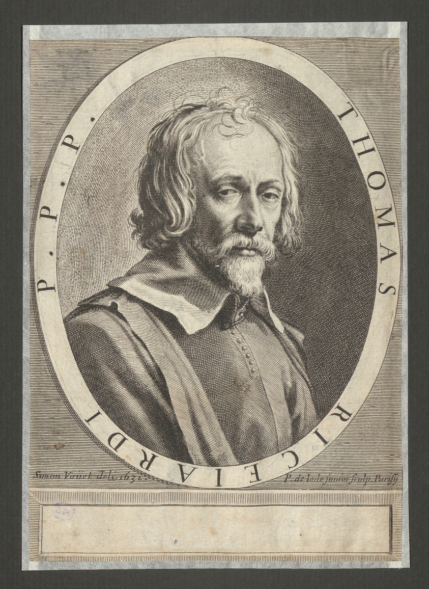 Signatur (ned i mitten i plåten): Simon Vouet deli 1632 P. de Iode le junior Sculp Parisis
