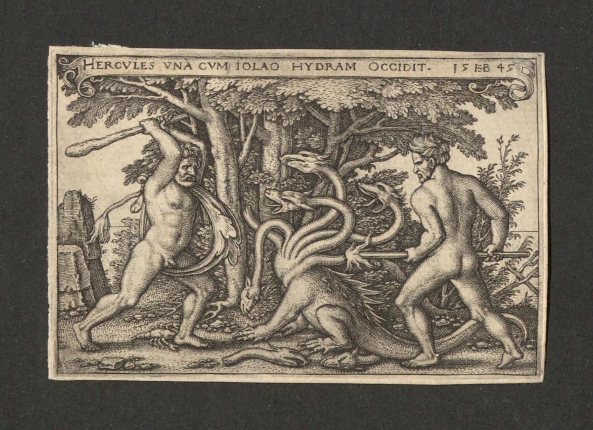 Påskrift (I mitten i plåten): Hercules Vna Cum Hydram Occidit