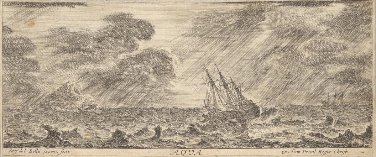 Water, a ship at sea during a storm, from "The Four Elements"
