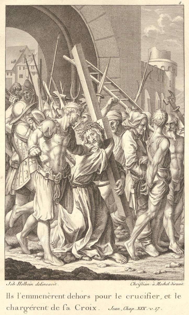 Jesus Christ forced to carry his own cross to his crucifixion From: The Passion of our Lord