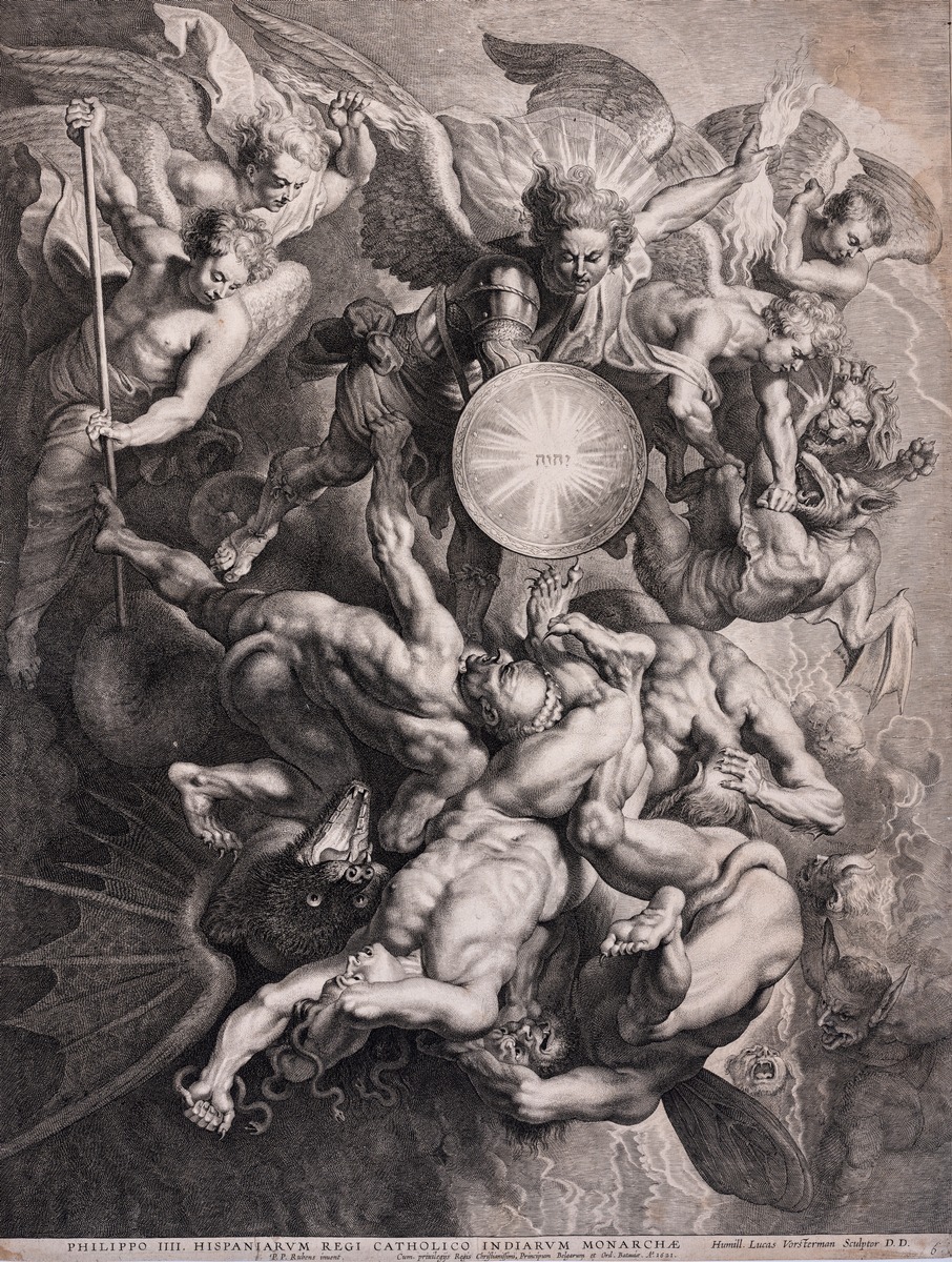 Ärkeängeln Mikael strider mot de upproriska änglarna