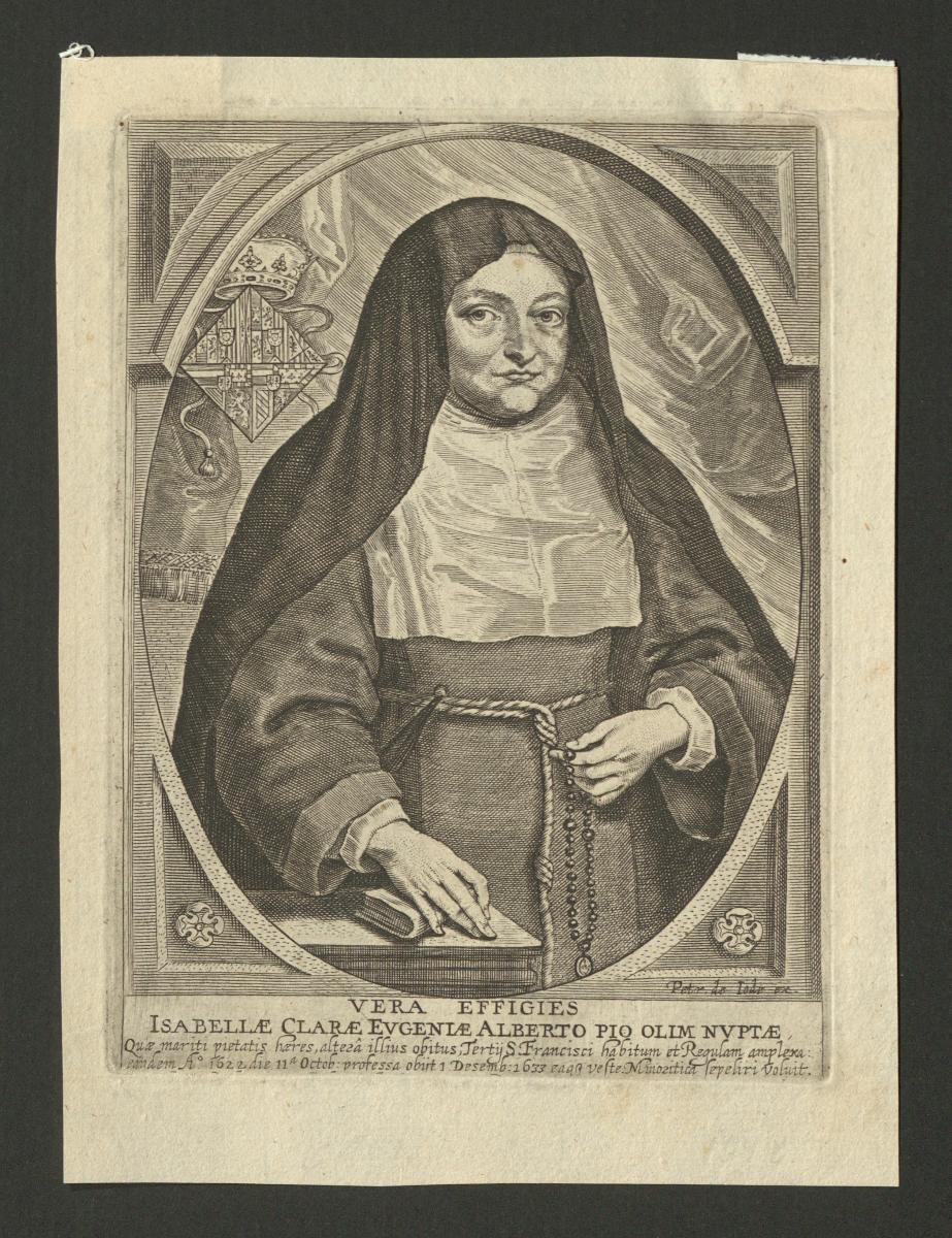 Porträtt av Isabella Clara Eugenia av Spanien (ur Theatrum pontificarum, imperatorum, regum, ducum, principum, etc. pace et bello illustrium)