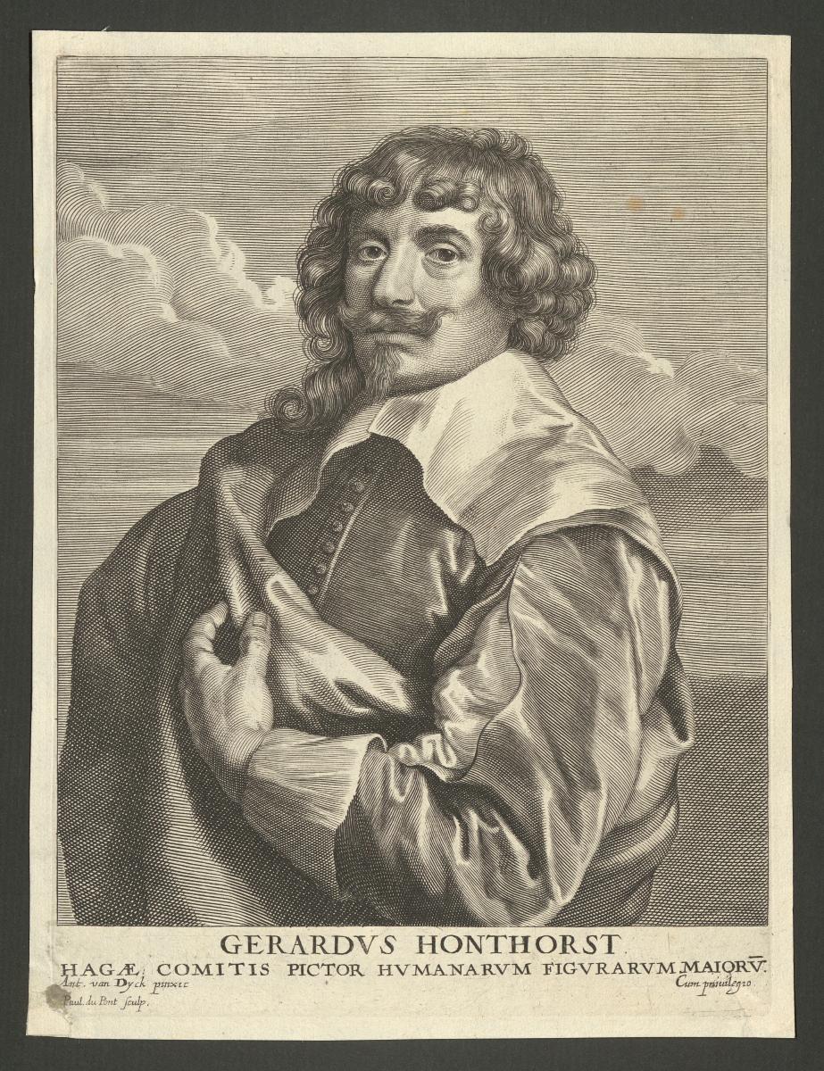 Påskrift (Nere i mitten): GERARDVS HONTHORST HAGÆ COMITIS PICTOR HVMANARVM FIGVRARVM MAIORV