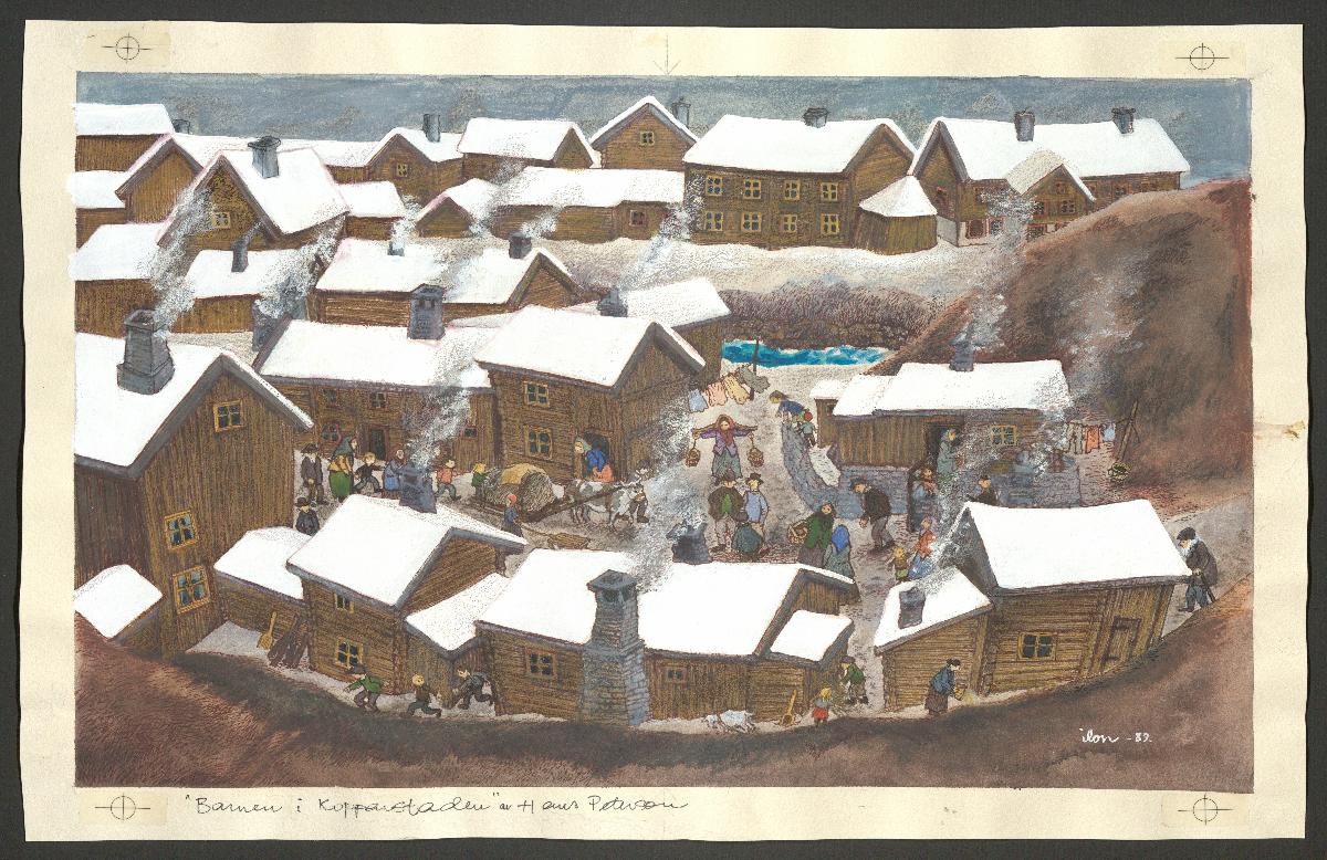 Påskrift (Nere till vänster): "Barnen i Kopparstaden" av Hans Peterson