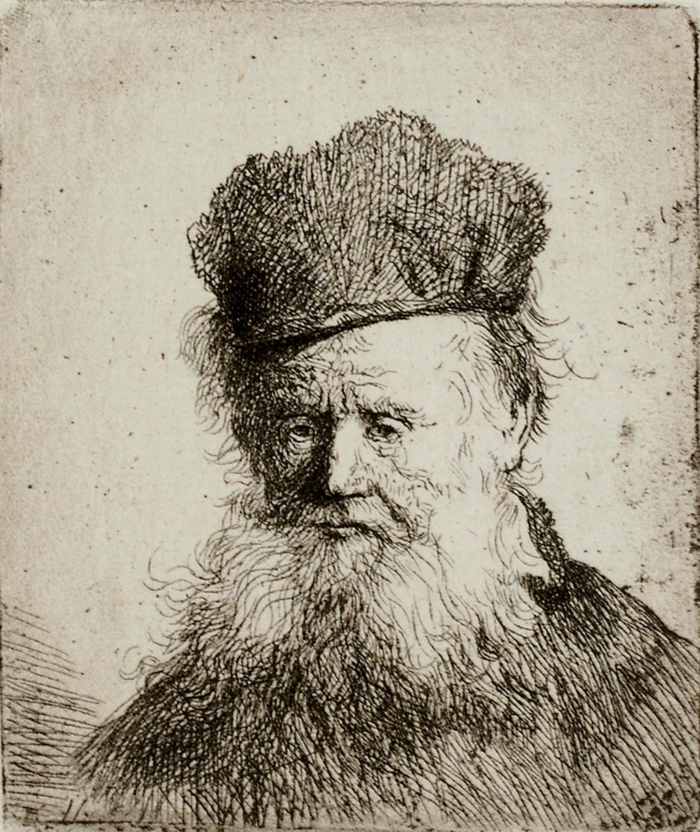 Gammal man med långt skägg och pälsmössa