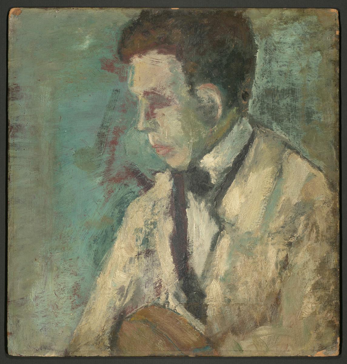Påskrift (a tergo): Oljemålning, porträtt av konstnären Folke Andréasson (35x32)