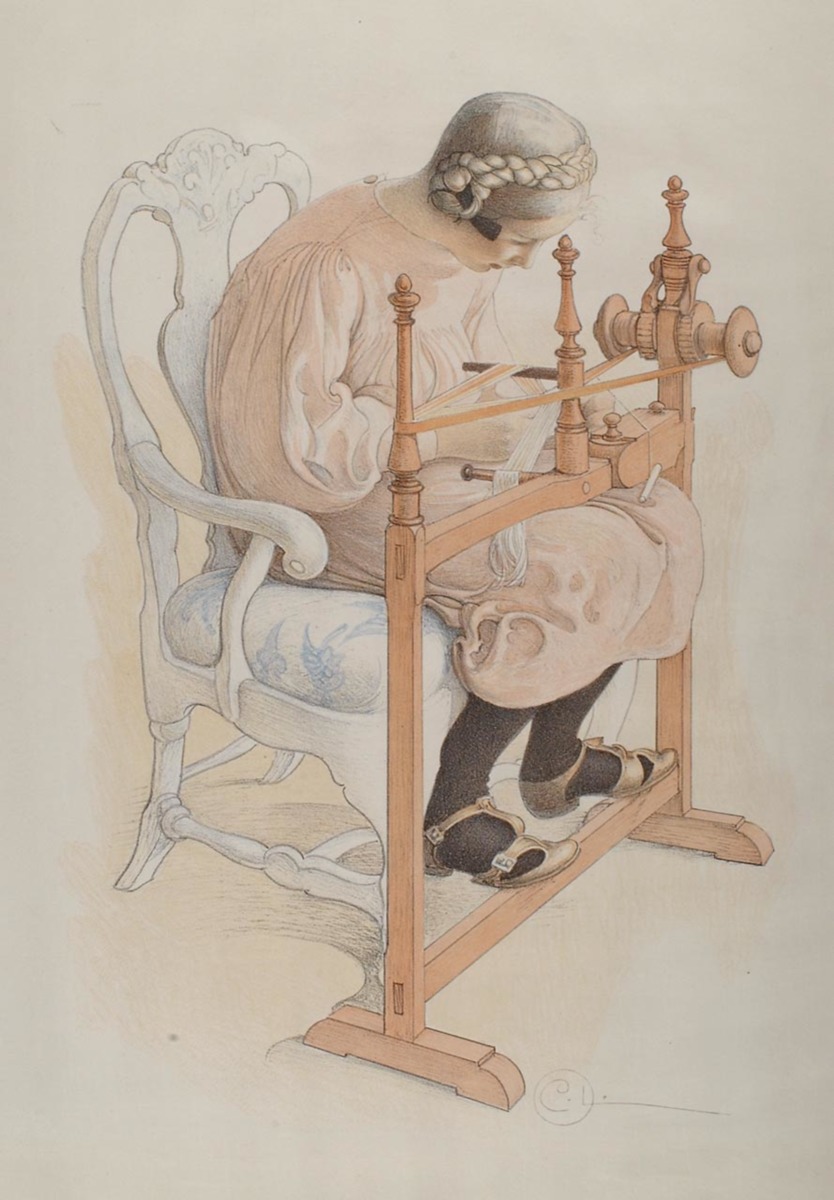 Påskrift (Nere i mitten i plåten): Flickan som väfver röda guldband