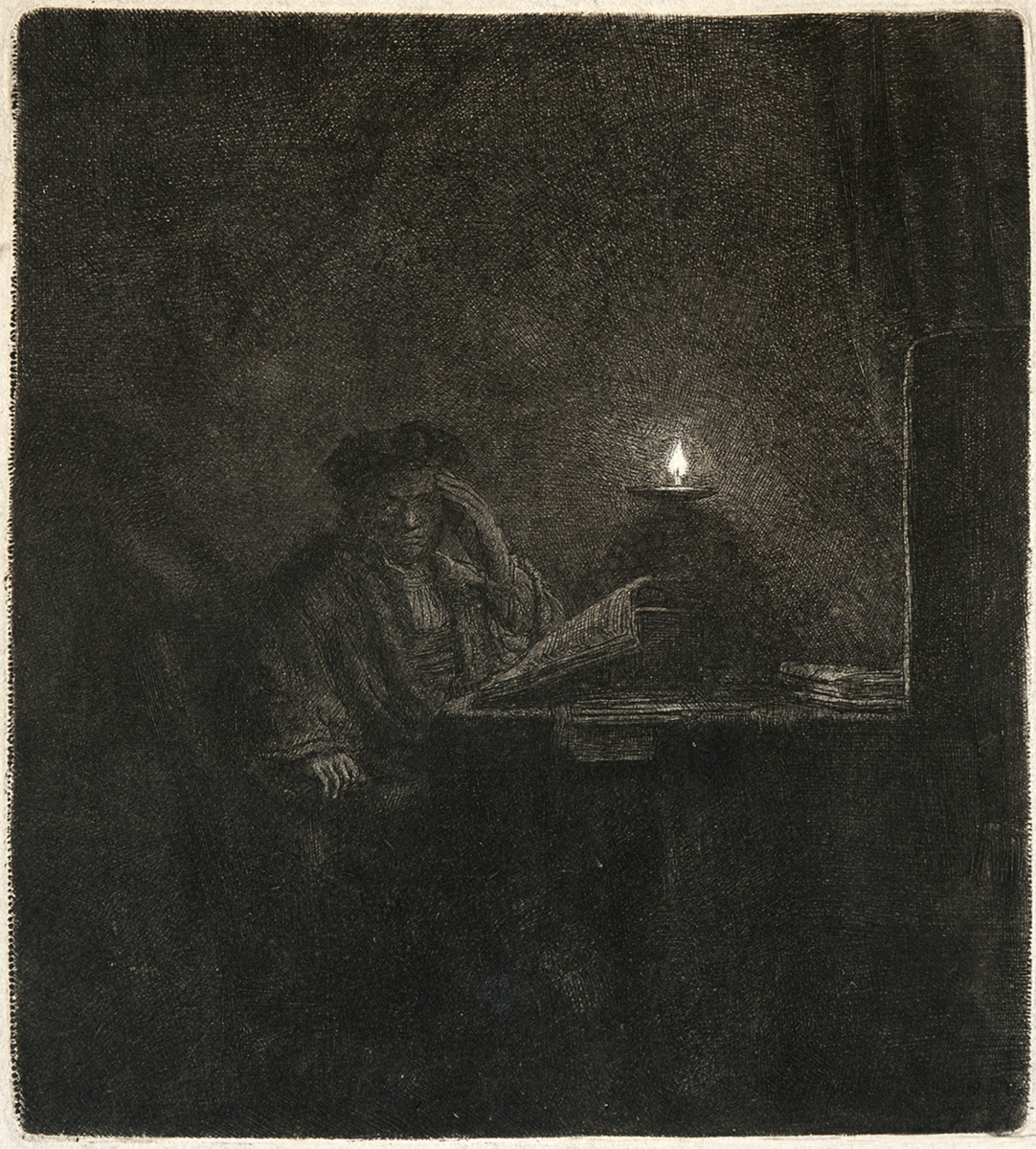 Redan i början av sin karriär hade Rembrandt ett stort intresse för etsningen som uttryck och genom åren fortsatte han att experimentera med tekniken. Han tryckte på olika typer av material och var väldigt tidig med att använda japanskt papper.