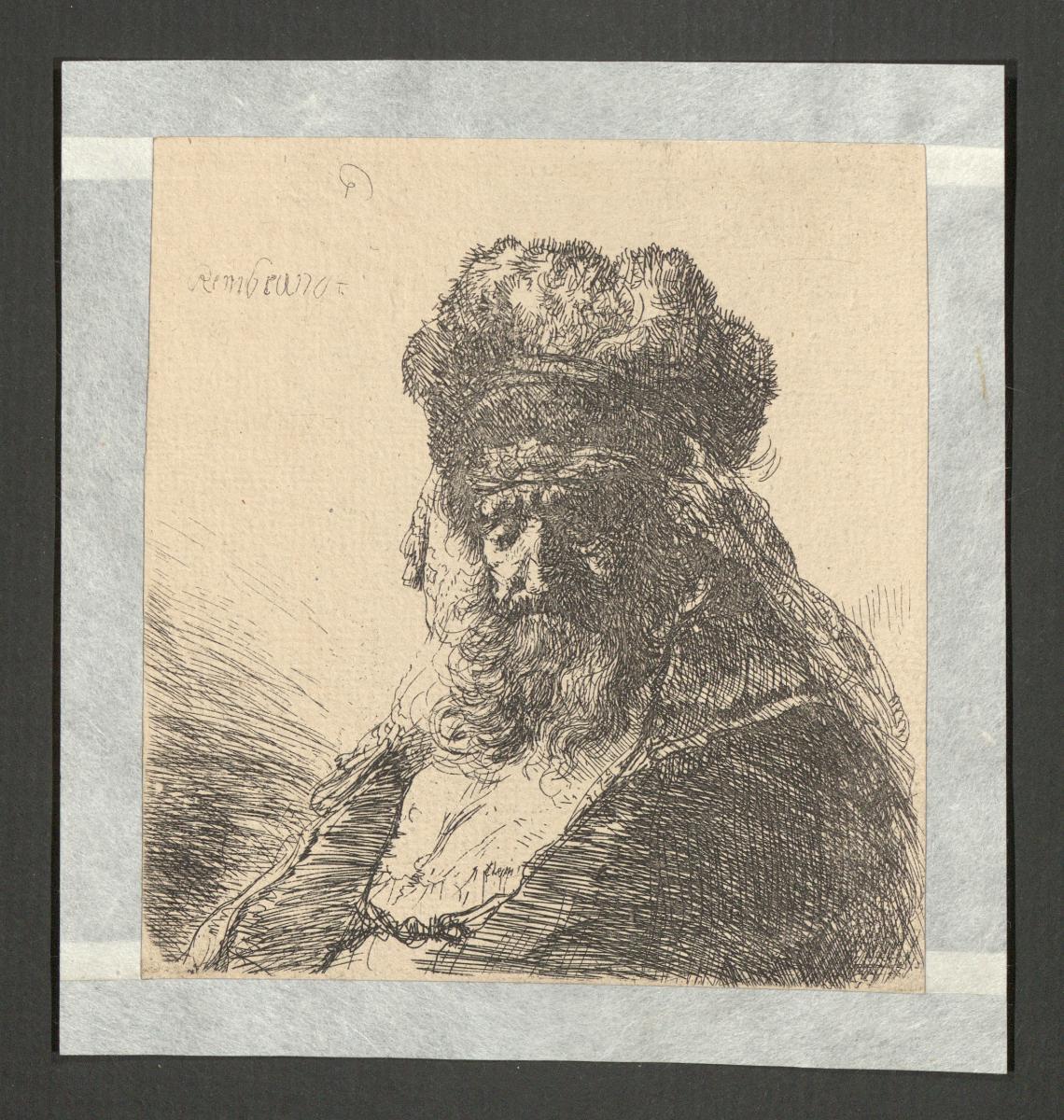 Signatur (Upp till vänster): R (spegelvänt) Rembrandt (((i plåten)))