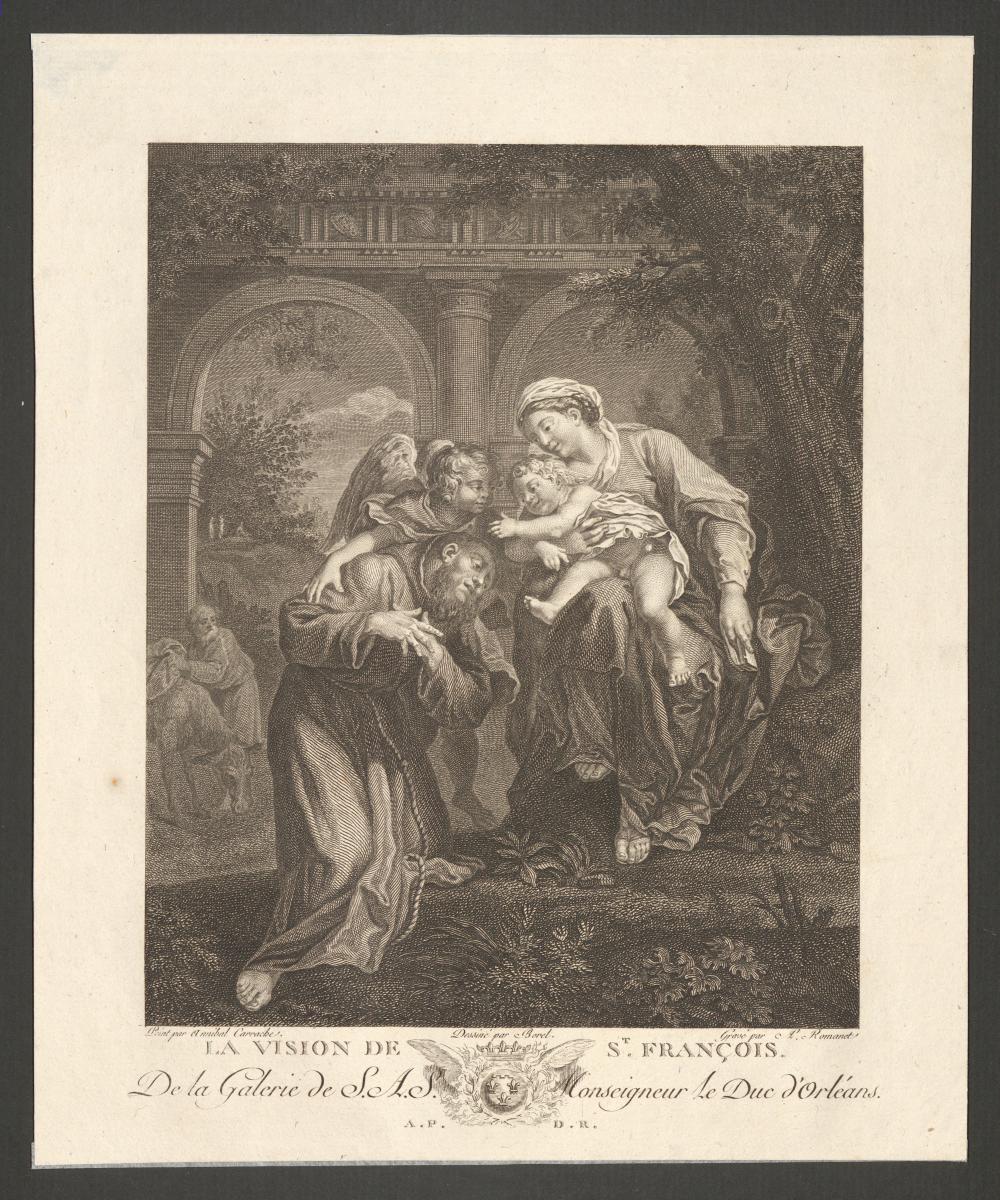 Påskrift: N.mitten: La vision de St Francois (i plåten)