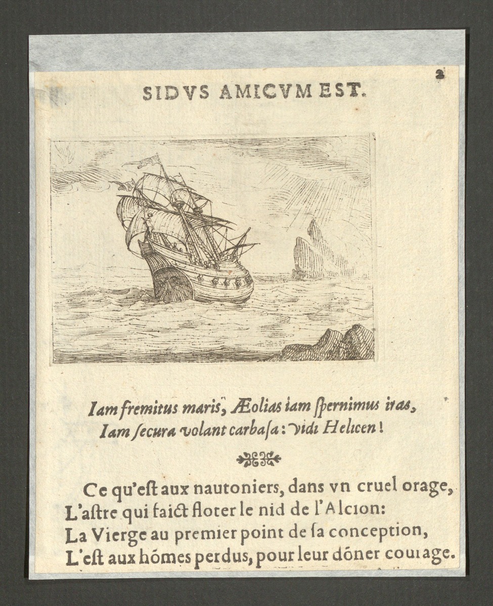 Jungfruns liv, representerat i emblem - Skepp kryssandes mellan klipprev