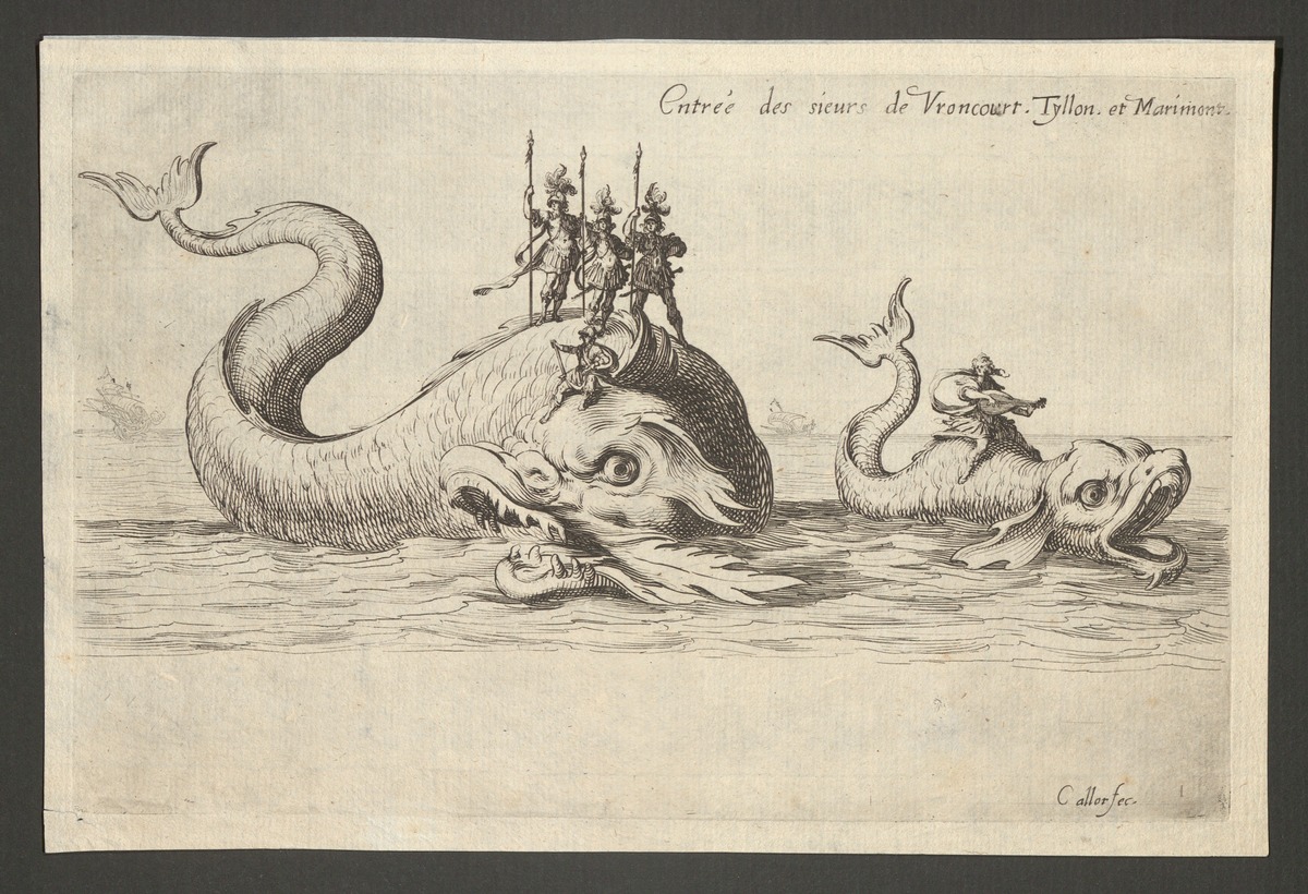 Påskrift (Uppe till höger i plåten): Entrée des sieurs de Vroncourt, Tyllon et Marimont