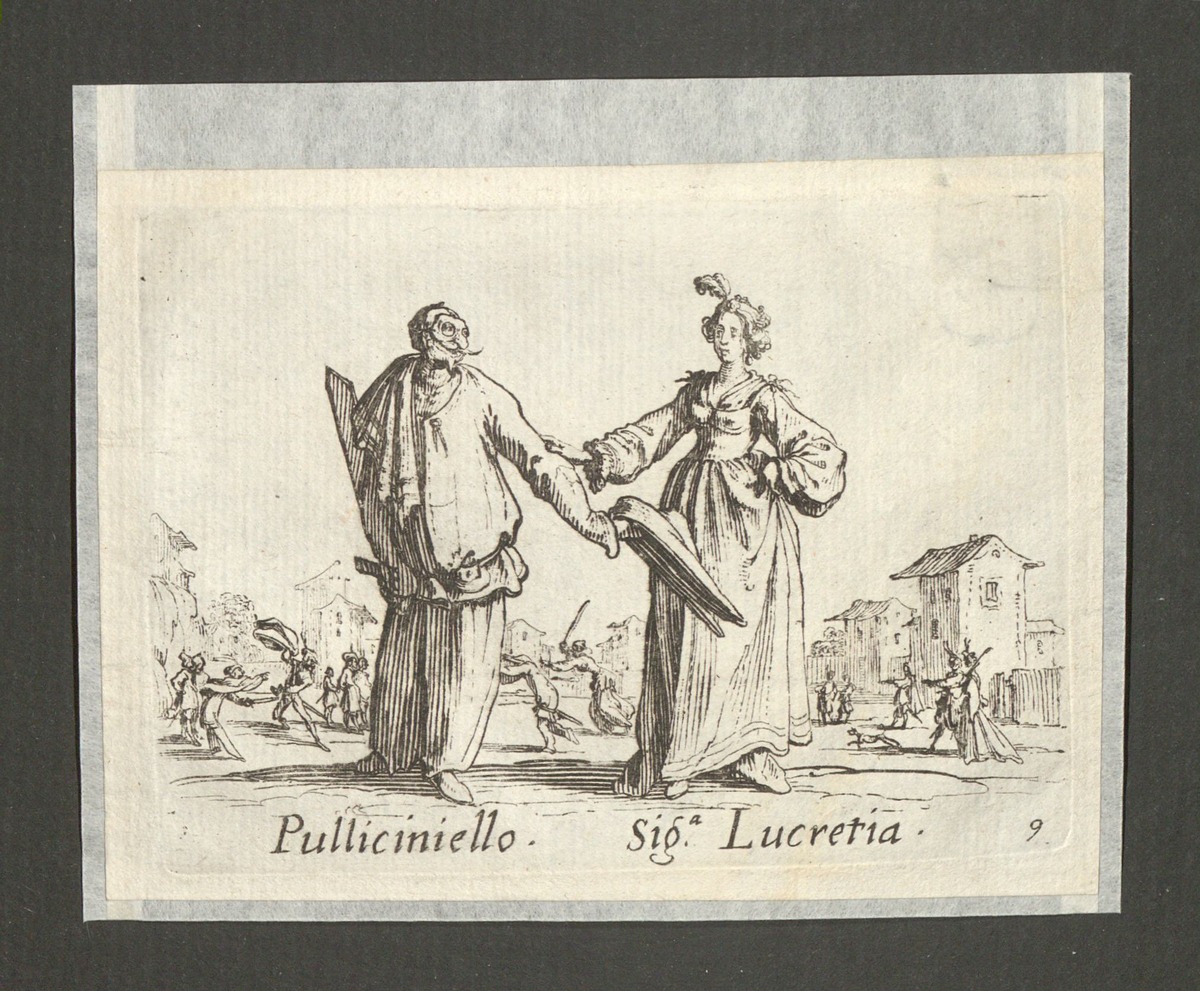 Påskrift (nedtill i plåten): Pulliciniello - Sig. Lucretia