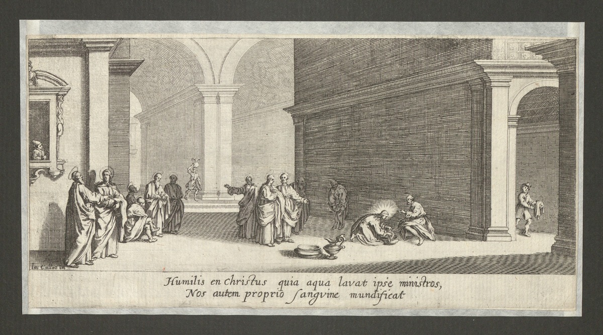 Påskrift (nedtill i plåten): Humilis en Christus quia aqua lavat ipse ministros, /