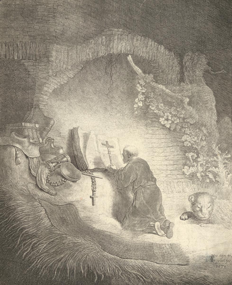 Signatur (Nere till höger): RL.v.Rijn in. JG.v.vliet fec. 1671 (i plåten)
