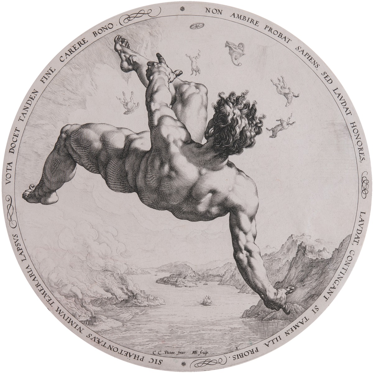 Påskrift (längs kanterna, i plåten): SIC PHÄETONTAVS NIMIVM TEMERARIA LAPSVS . . . .