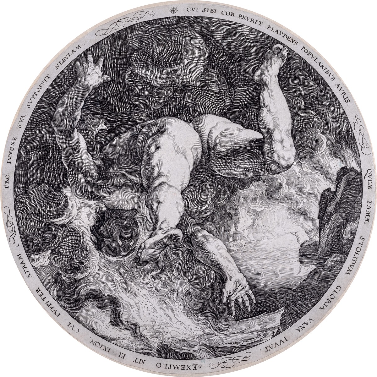 Påskrift (längs kanterna, i plåten): EXEMPLO SIT EI IXION, CVI IVPPITER ATRAM . . . .