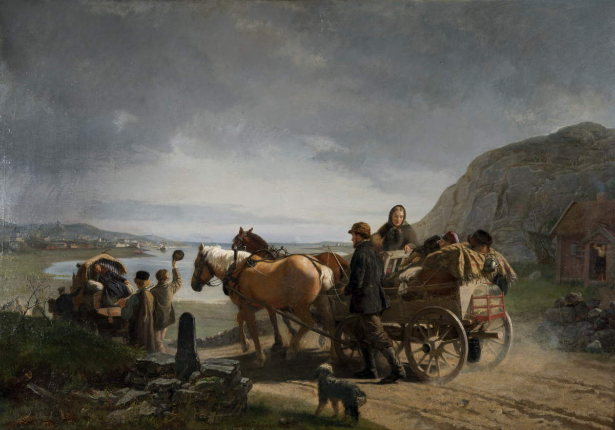 Från mitten av 1800-talet till 1920-talet emigrerade omkring 1,5 miljoner människor från Sverige till främst USA. Utvandringen intensifierades i samband med missväxtåren 1868–1869 då Saloman påbörjade arbetet med målningen. Det var en stor del av Sveriges befolkning som lämnade landet; bland dem födda under senare delen av 1800-talet emigrerade 20 procent av männen och 15 procent av kvinnorna.