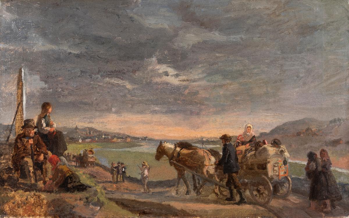 Emigranter på väg till Göteborg. Skiss