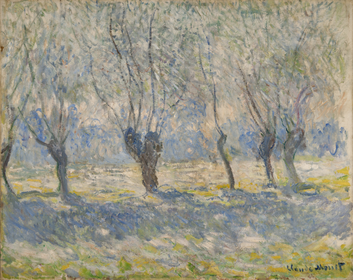 Pilar i soldis, Giverny tillkom under en tid då Monet började arbeta i serier med samma motiv i varierande ljusförhållanden. En annan version av samma motiv finns i London, då utförd som en vinterbild i kylig färgskala.